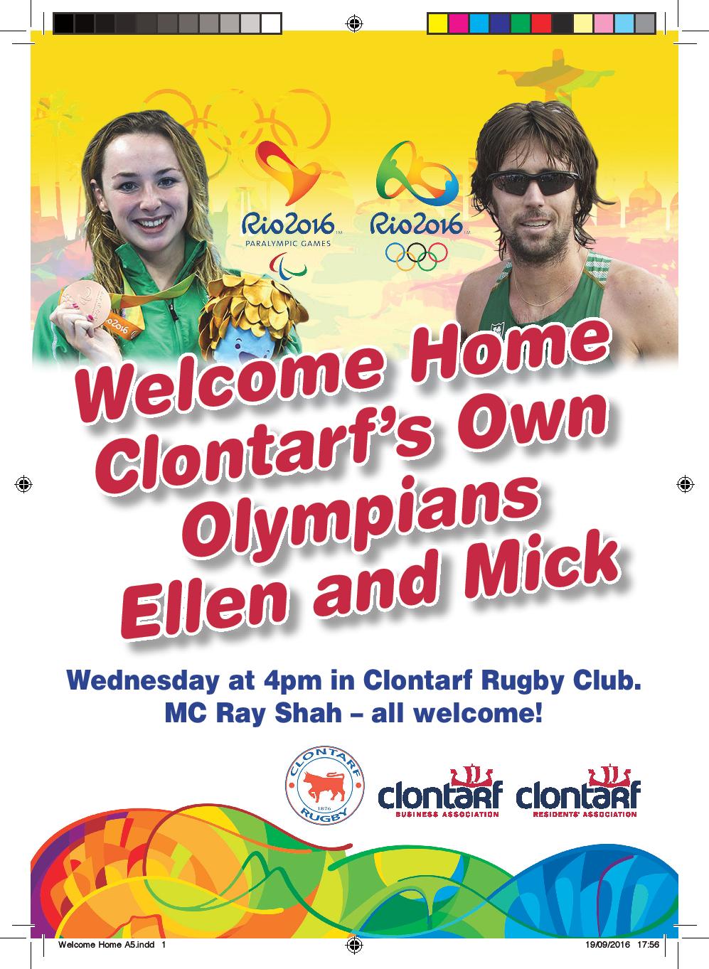 Clontarf Business and Residents Association are holding a presentation for Mick Clohisey and Eileen Keane today, Wednesday 21st, at 3:45pm in Clontarf Rugby Club and would like to invite any club member to attend and mark the achievements and participation of both Olympians.